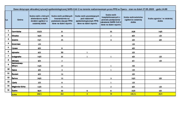 Aktualna sytuacja epidemiologiczna na Żywiecczyźnie [27.05.2020] Opublikowano środa, 27 05 2020 Utworzono: środa, 27 05 2020 źródło: psse.zywiec.pl Udostępnij Drukuj E-mail Poprzedni artykuł Następny artykuł