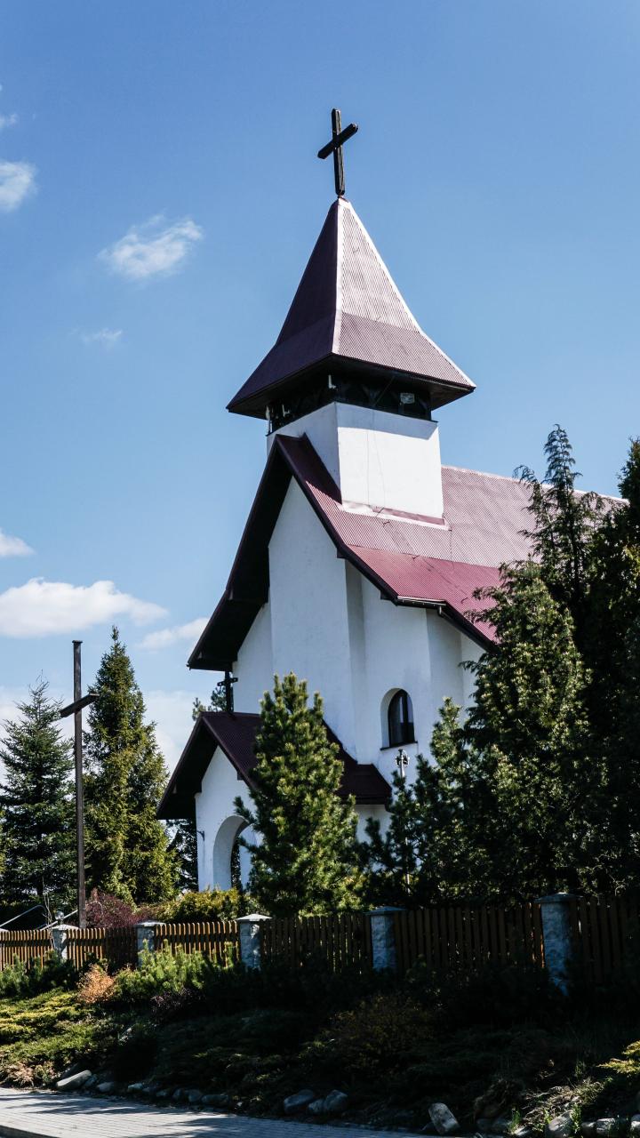 Rozległe tereny obecnej wioski Laliki i duże odległości do najbliższych kościołów sprawiły, że w głowach mieszkańców zrodziły się plany na wybudowanie kościoła jeszcze przed II wojną światową. Przy odbudowie w 1947 r. spalonej od pioruna dzownnicy na Pochodzitej, została ona powiększona o wymiary niewielkiej kaplicy. 2 razy w miesiącu ksiądz z Milówki. W 1965r. ś.p. ks. Stanisław Fijałek rozbudował tę kaplicę i odtąd rozpoczęło się tu stałe duszpasterstwo. W 1981 r. zostało wydane zlecenie wybudowania kościoła w centrum wioski, które ks. bp Jana Pietraszko zlecił ks. Kazimierzowi Bubie. Wspólnie wyznaczyli najodpowiedniejsze miejsce pod budowę kościoła i plebanii. Projekt kościoła został wykonany przez małżeństwo Zbigniewa i Ilony Główka z Bielska-Białej Straconki. Ks. bp Jan Pietraszko zatwierdzał także wystrój wnętrza tego kościoła. 4 rodziny ofiarowały działki pod budowę kościoła i plebanii bezpłatnie : Józef i Anna Brączek, Ludwik i Michalina Pytel, Józef i Otylia Urbaczka, Józef i Maria Brączek.